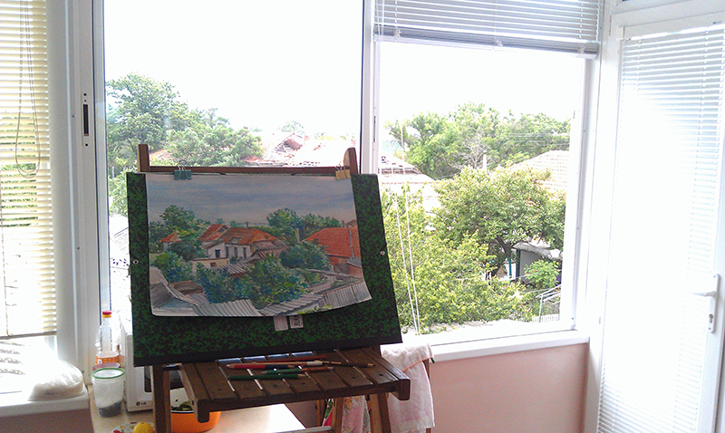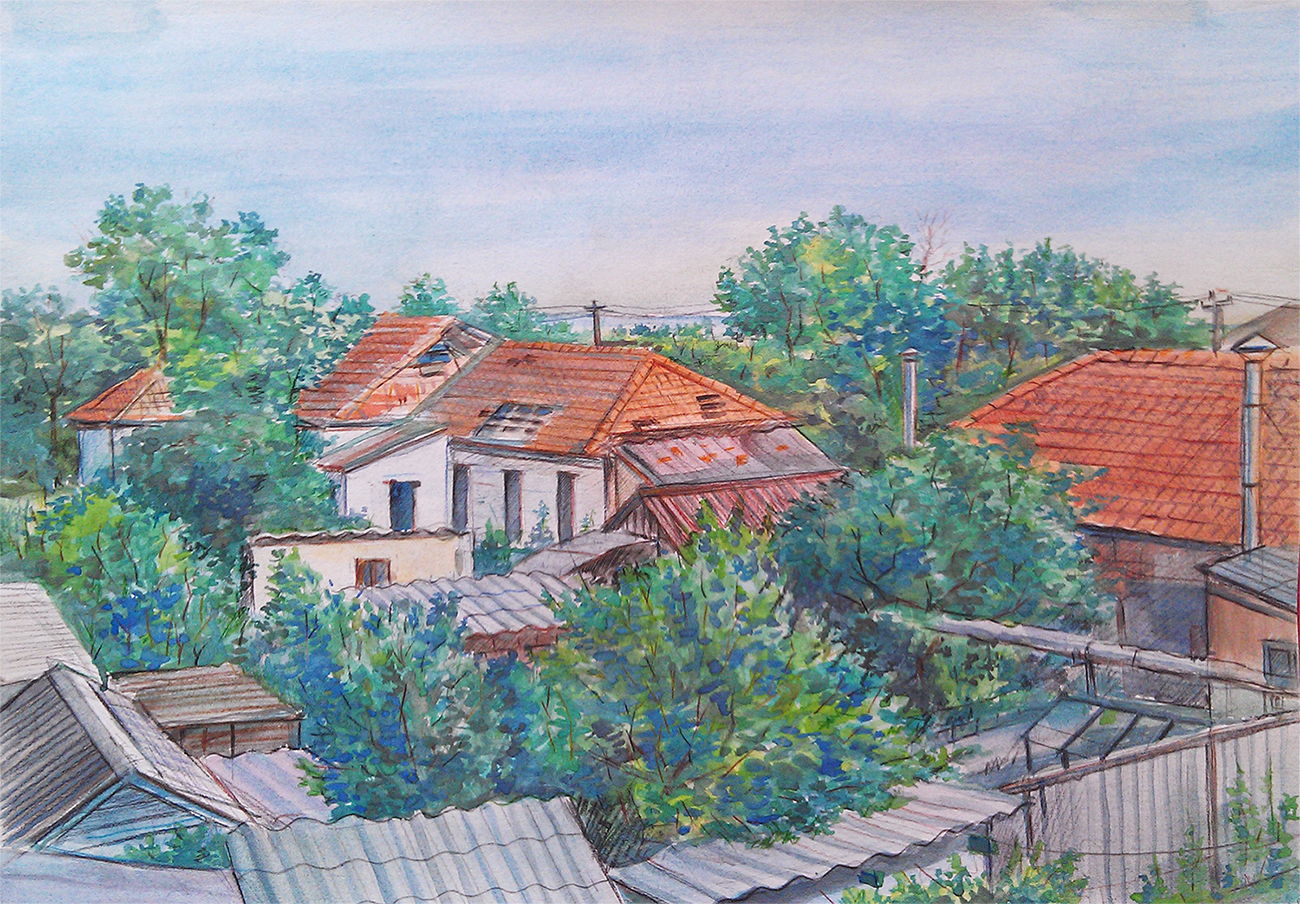 Пейзаж в Каче Бумага, акварель, цветные карандаши. Процесс «Оригинал» |